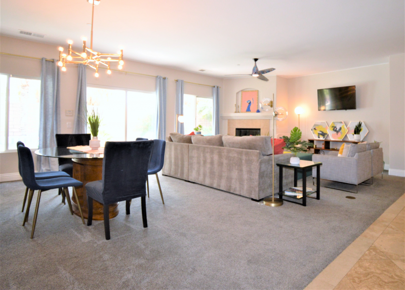 The home is part of a community with beautiful oasis landscaping with easy access to all the desert cities have to offer: golf, dining, shopping, hiking, etc. Community offers tennis courts, 3 pools, BBQ Portico, and other amenities ready for your enjoyment.
